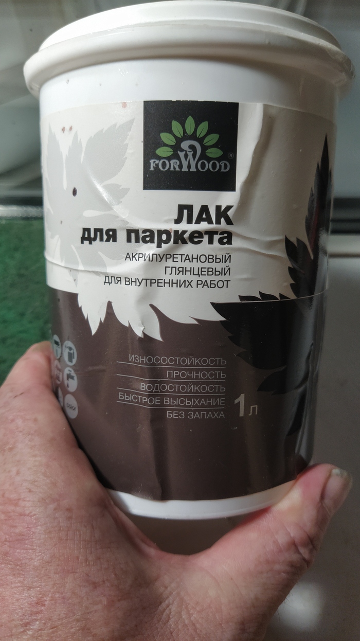Лак, акрил-уретановый, очень мне нравится. Без вкуса, без цвета, без запаха, водоразбавимый.