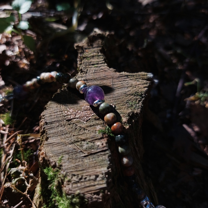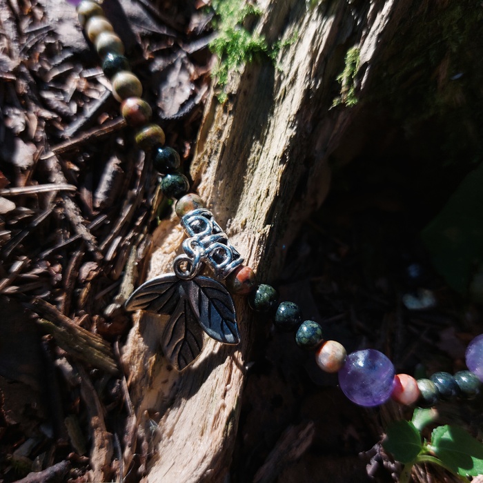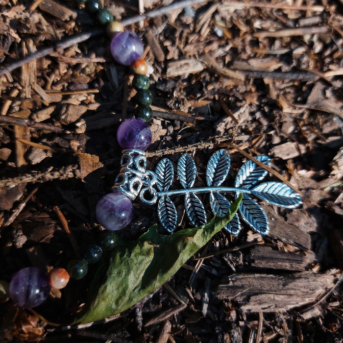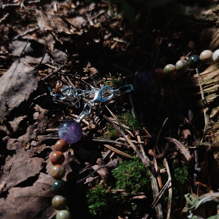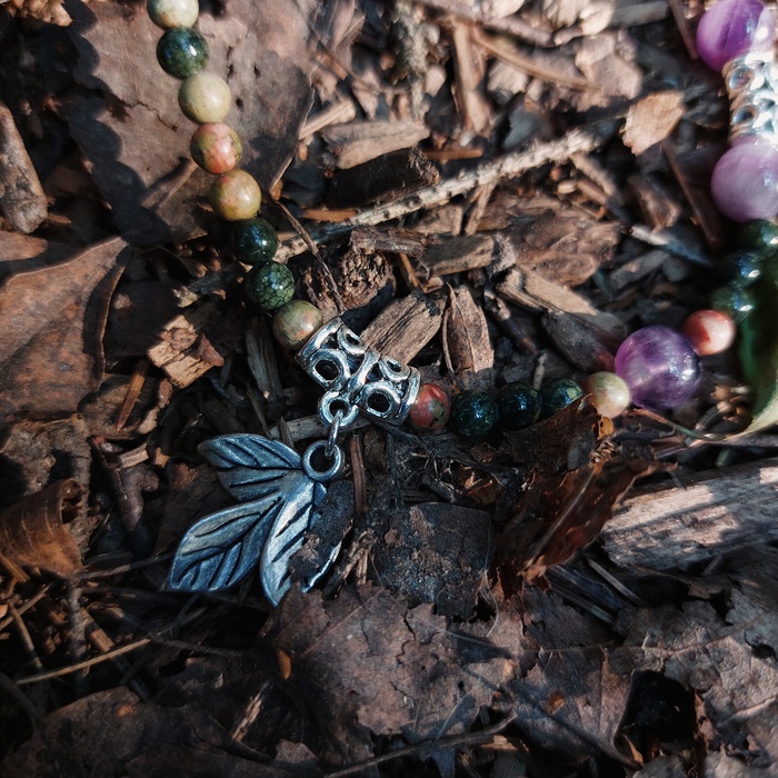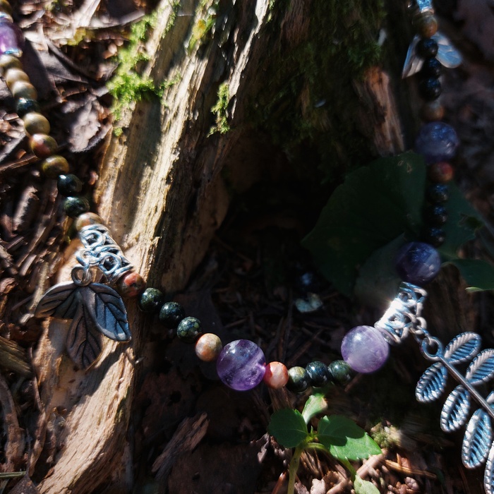 Материалы: змеевик, яшма, аметист, бижутерный сплав.