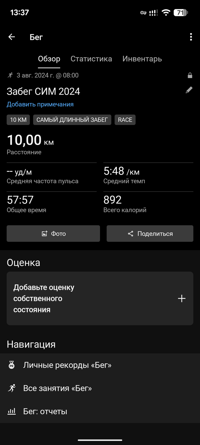 Есть идея продолжить эксперимент с полумарафонами до 50 дней подряд. Зачем? Хочу найти свой предел. Прямо скажу, что больше удивлён, чем доволен собой. Не думал зайти в пути самопознания так далеко :) Да и приятно всё-таки в 47 годиков сделать такой месяц забегов. Пока есть возможность - буду продолжать. Сойти никогда не поздно. Себя вчерашнего-позавчерашнего перебегал :) и это радует. Попробую перебегать ещё чуть-чуть :)