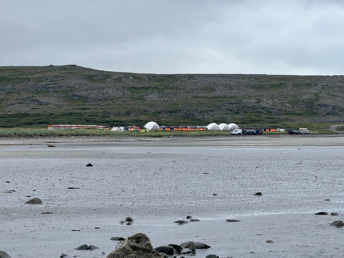 На самом полуострове среднем дорога похожа на лунные кратеры. Быстро ехать никак не получится. Петлять можно по всей дороге, но, на мой взгляд, это не поможет ни скорости, ни подвеске. Ехать по такой дороге пришлось около 20 километров, по ощущениям это заняло часа 2-2,5. Дорога идет вдоль берега полуострова и в какой-то момент появляется другой берег - это и есть полуостров Рыбачий, цель нашего путешествия.