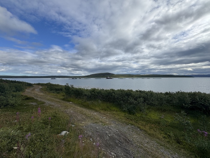 В губе Большая Мотка стоять корабли, как мы поняли - они добывали рыбу. Для нас, жителей лесов и болот - это очень необычное зрелище.