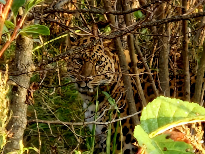 В первый раз леопард был обнаружен на «Гамовском» кластере нацпарка «Земля леопарда» у села Андреевка летом – сенсационное событие подтвердило предположения о расселении самой редкой в мире крупной кошки на юг. Тогда фотоловушка запечатлела животное с добычей в местной оленеферме.