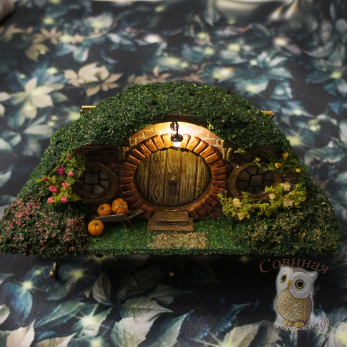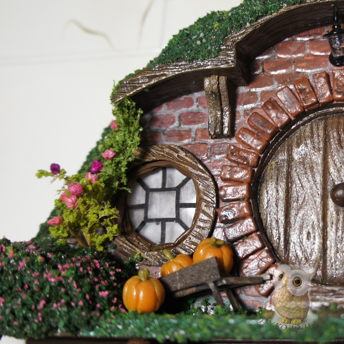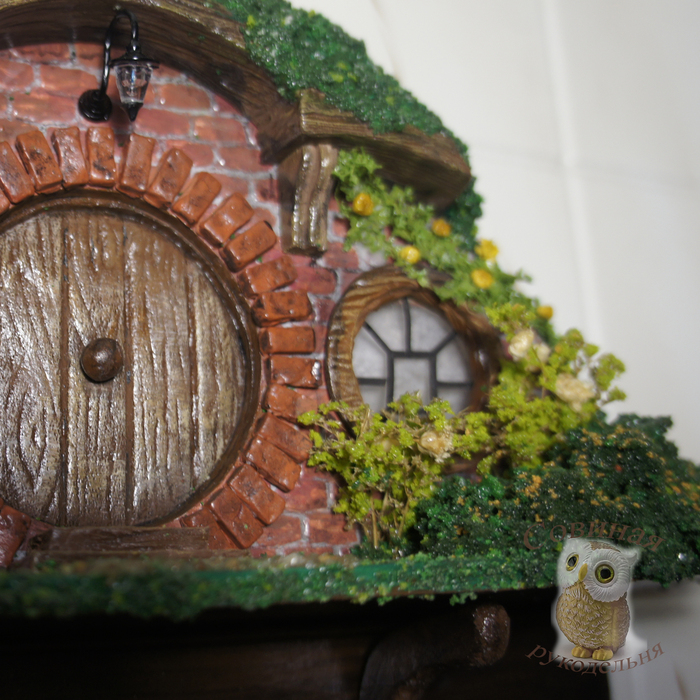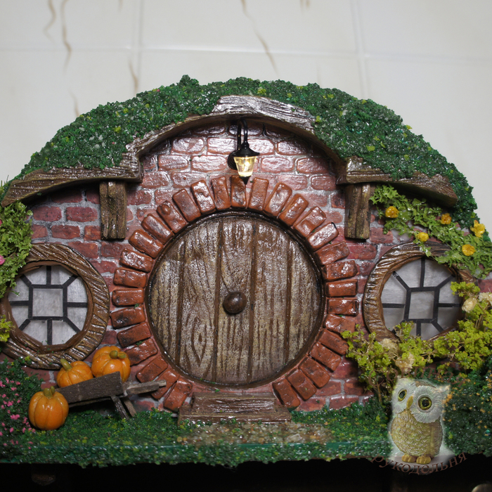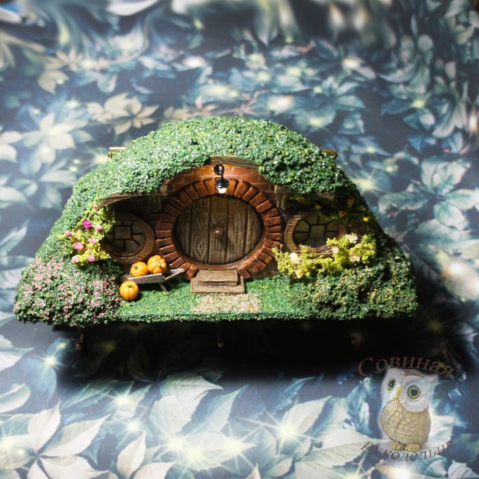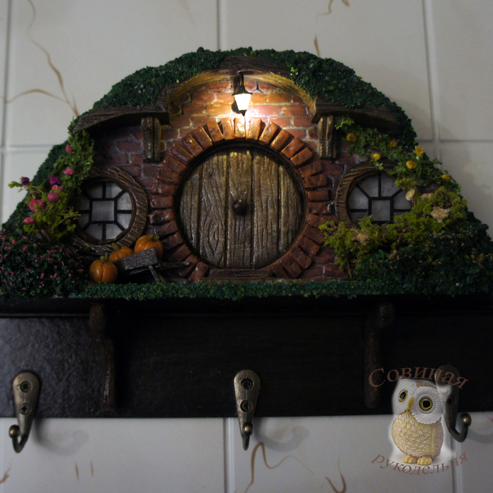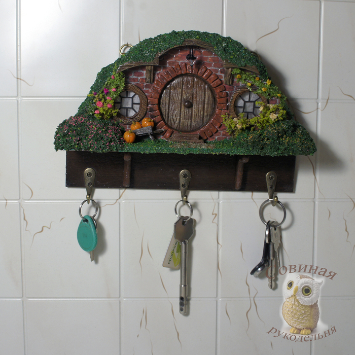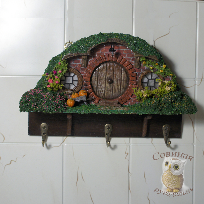 Примерно месяц назад муж подкинул мне древнюю ссылку - Хоббитон: от декораций к фильму до всемирно известной достопримечательности. Я не фанат Властелина колец и иже с ним, фильм смотрела тыщу лет назад, когда он только вышел, но домики (норы) хоббитов ещё тогда меня чем-то зацепили. В общем, нынче решила развлечься собирательным образом этих домиков и, для практичности, сделала в виде ключницы.