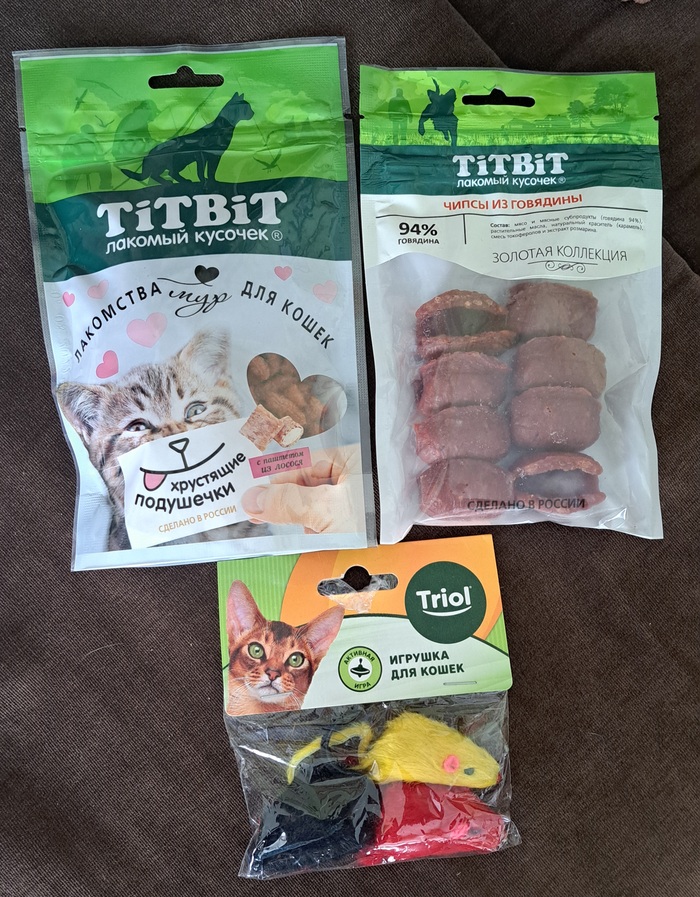Любимым пушистикам. Кот уже поиграл с мышками, вкусняшки получит чуть позже.