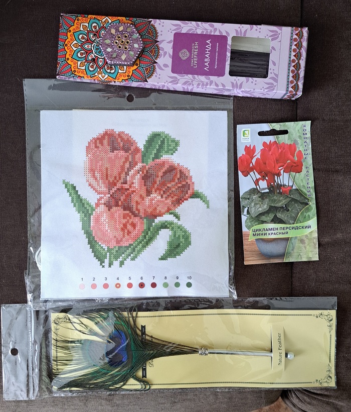 Общий вид на фоне чудесного шелкового платочка, который тоже был в посылочке.