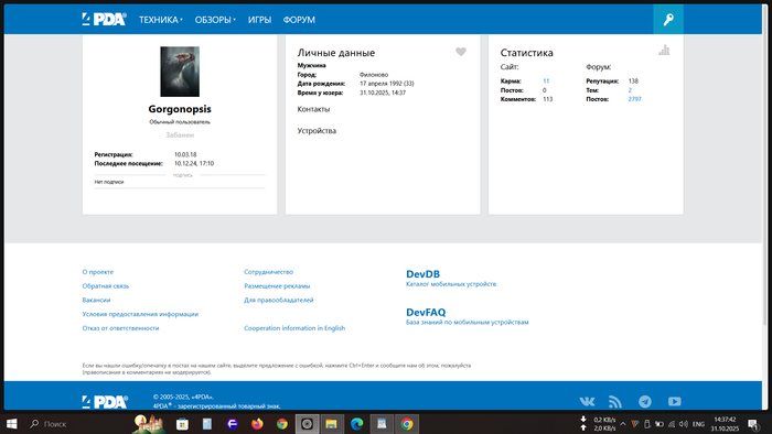 Далее ему ответил с высокой репутацией обитатель Stіll, спросил, доступна ли мне тема Последний шанс, которую видят только забаненные аккаунты. Друг ему так и не успел ответить... А так да, эта тема мне недоступна, потому что в аккаунт свой я давным давно не мог войти, удалил пароли с сайта 4pda в Chrome.