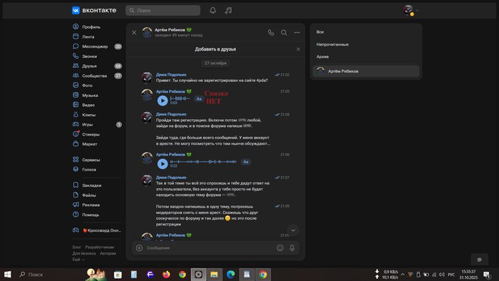 Именно под давлением форумчан новичок не дописал слова " как только нас -- *краснодарский край* начали блокировать *глуша при этом интернет* -- я написал другу *Вконтакте*, как решить эту поблему и он сослал меня сюда".