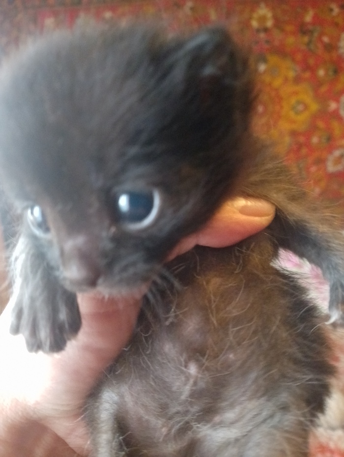 Судя по окрасу, мальчишка породистый или метис, окрас у него очень необычный, мраморный.