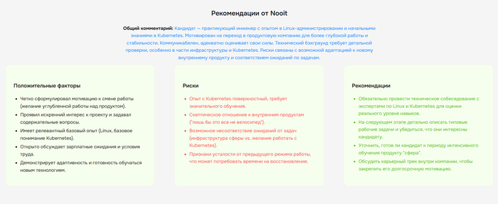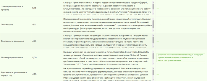 Этот человек полностью подобрал и верифицировал нам серьёзный научный базис для модели оценки. +Дополнительно была проведена этическая экспертиза самой модели, чтобы мы точно были уверены что не ущемляем ничьи права и соответствуем Европейскому AI акту. (Тут ещё отмечу, что в рамках платформы мы требуем подтвердить получение согласия кандидата на анализ)