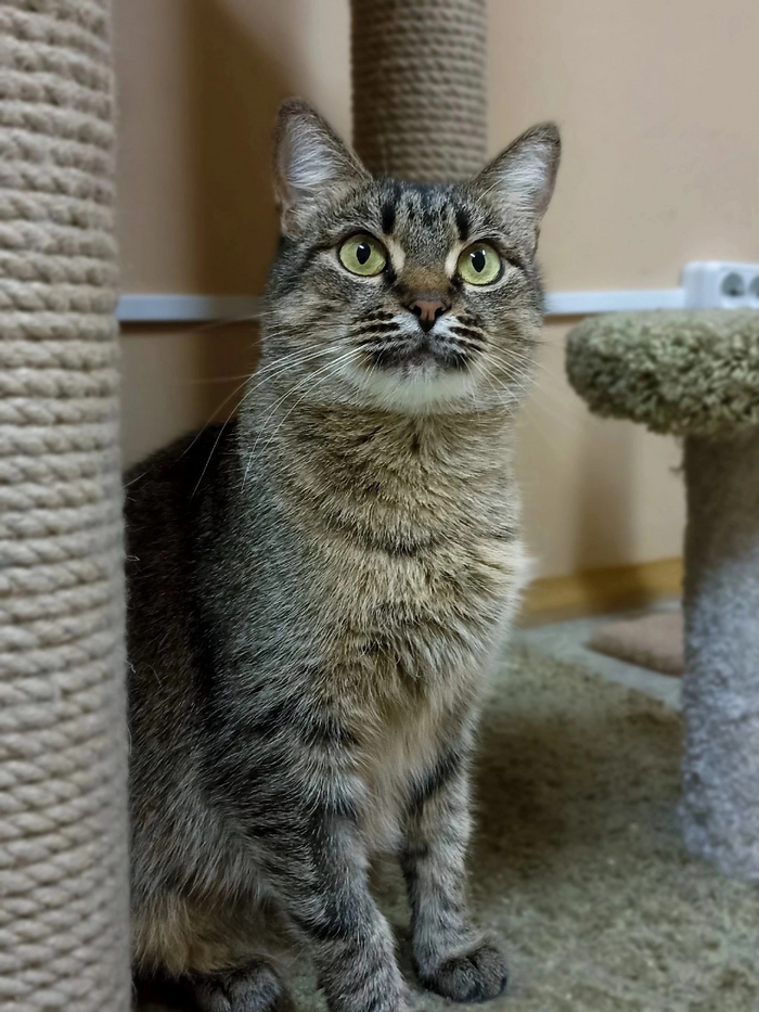 Сегодня Дымка проживает в клетке, лишенная возможности свободно бродить и исследовать мир. 😢Изоляция необходима для безопасности других кошечек, но как же тяжело видеть, как эта нежная душа заточена в четырех стенах, мечтая о заботе и близости с человеком, который даст ей вторую надежду.🙏
