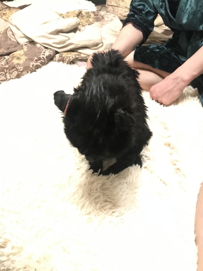 Соседи подкармливали. Себе взять не могли, у нас Большой взрослый черный кот и белая взрослая кошка.