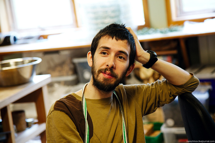 Это Паоло, он приехал из Португалии и остался жить в Солхеймаре, он главный в этой мастерской.