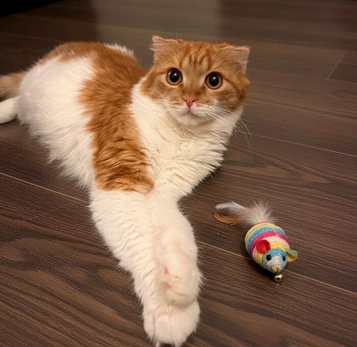 Муся, очевидно, метис шотландской вислоухой кошки.
