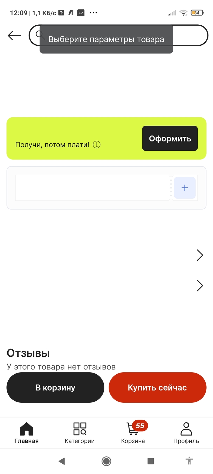 После перехода по ссылке ни одна кнопка не активна, просит выбрать параметры товара, но выбрать ни чего нельзя.