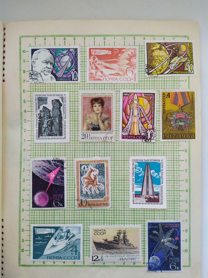 День добрый. Десять лет назад умерла моя бабушка. И совсем недавно я узнал, что она собирала марки. А как узнал? Дедушке неожиданно захотелось навести порядок на даче и повыкидывать старый хлам. Так вот, бабушкина тетрадка, которая на фото ниже, чуть не отправилась на костер. Я решил все-таки не торопиться. Поэтому вопрос к тем, кто в этом во всём разбирается - есть ли из представленного списка что-то имеющее принципиальную финансовую ценность?