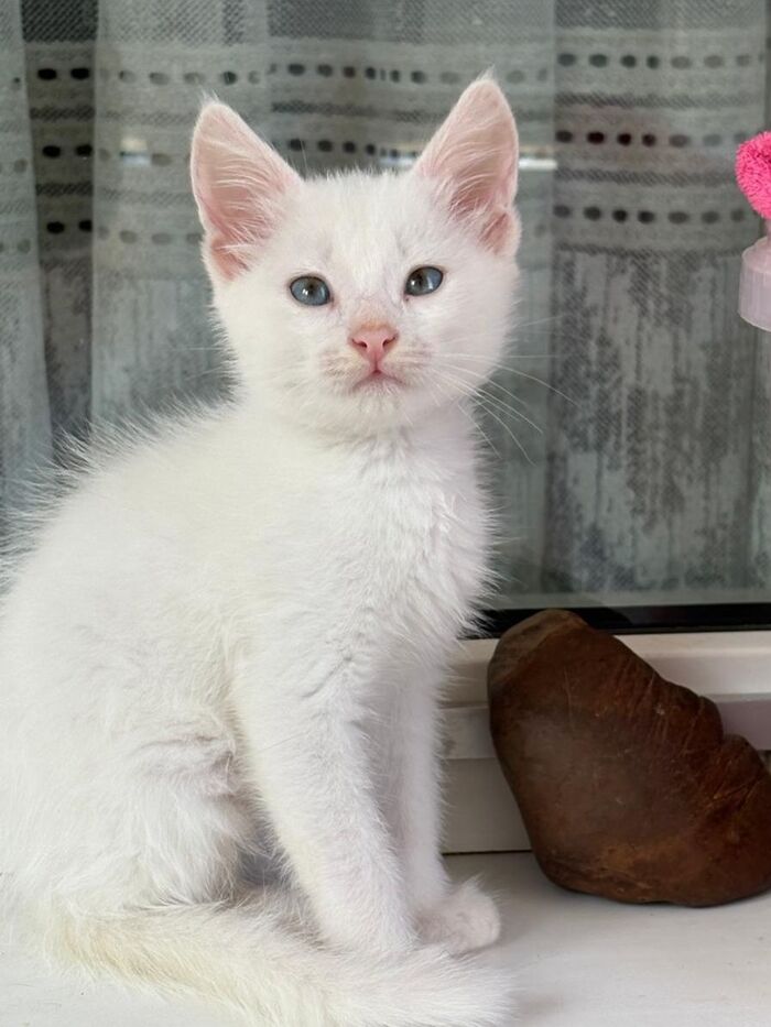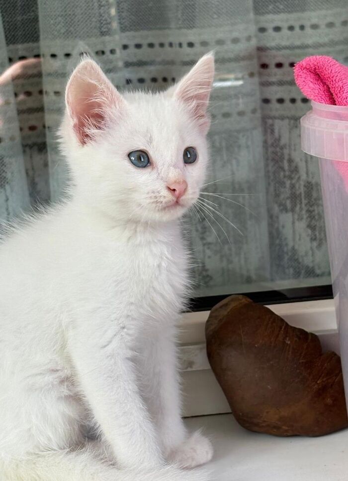 Робина спасли с улицы вместе с братиками, сейчас все трое беляшей: голубоглазый, желтоглазый и разноглазый ищут дом.
