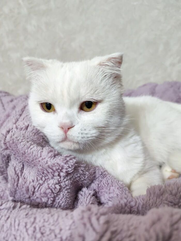 Шотландская вислоухая кошечка цвета первого снега ищет дом!