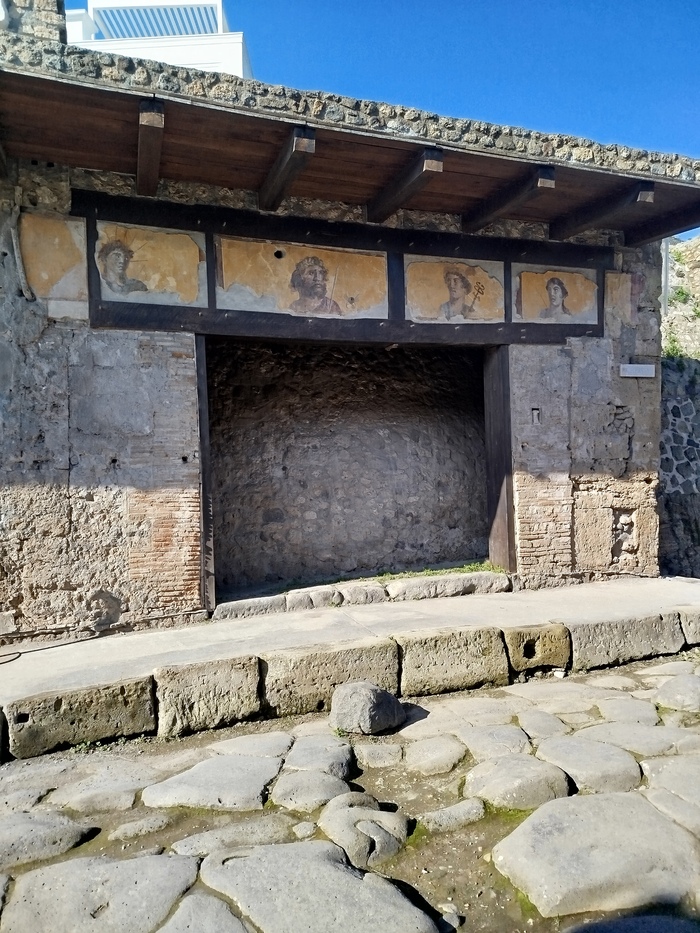 Представьте себе небольшое помещение с каменным прилавком, в который встроены круглые отверстия — dolia. В этих глиняных горшках когда-то дымилась еда. Археологи, откопавшие термополий на Via di Nola, нашли внутри остатки последних блюд: свинину, рыбу, улиток, говядину, бобы, чечевицу, вино . Это не просто мусор — это меню, застывшее во времени.