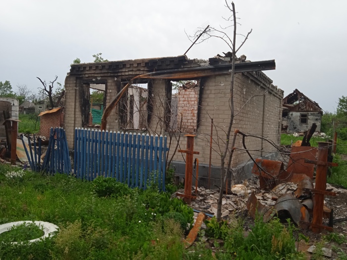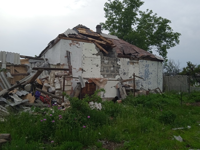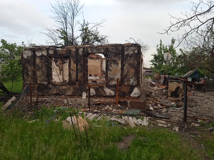 Было уже наверное середина апреля когда в соседский дом поселились бойцы правого сектора, сделали две огневых точки в метре от нашего дома и для нас наступил настоящий ад, так как по нашему дому стали стрелять непрерывно и продолжалось это до тех пор, пока их не убили. 20 апреля нам пришлось покинуть дом так как в спальне на меня обвалился потолок от прямого попадания в дом, а в другие комнаты залетали пули в том числе и зажигательные, нам пришлось тушить пожар в доме, соседке в лицо залетел осколок, еле смогли остановить кровь. Ещё почти сутки мы провели в соседском сарае под жёстким обстрелом со всех сторон, а потом нас вытащили и эвакуировали российские военные на БТРе в больницу, где мы провели ещё 2 недели. Но это уже совсем другая история...