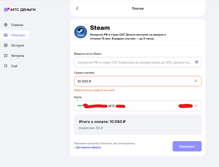 Не знаю, было ли это здесь... вот НЕ РЕКЛАМА! Тут куча всяких сервисов, которые предлагают пополнить счёта на игровых площадках типа STEAM. GGsel кажется. Берут конский процентик маленький. А тут МТС внезапно: