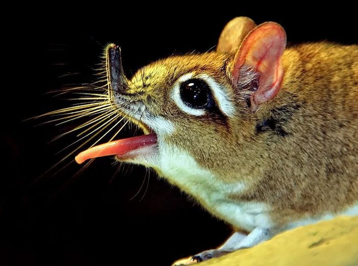 Говорят, что слоны не умеют прыгать. Тем ироничнее, что в генеалогическом древе хоботного гиганта оказались... попрыгунчики. Да, эти крохотные существа, похожие на крысу, — пусть и дальние, но родственники слонам, даманам, ламантинам и трубкозубам. И сегодня мы расскажем о длинноухом попрыгунчике, или слоновой землеройке.