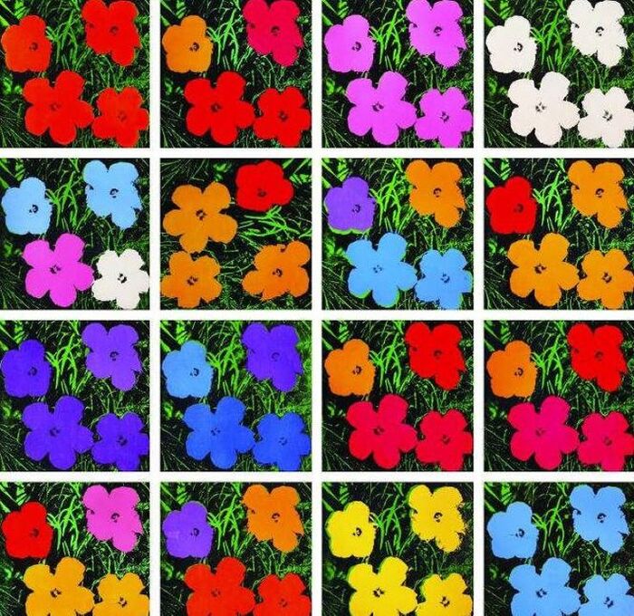 Затем, известный художник Энди Уорхол использует эту фотографию для того, чтобы, с помощью техники трафарета, создать серию масштабных картин, которая называется «Цветы»