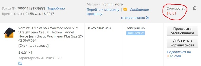 Так же я увидел, что у них какая то странная цена - 0.01 $. Тут я окончательно убедился, что это какой-то баг, и подумав, что нехорошо пользоваться багами, отменил заказ (от тут же автоматически закрылся), и написал об этом баге продавцу: