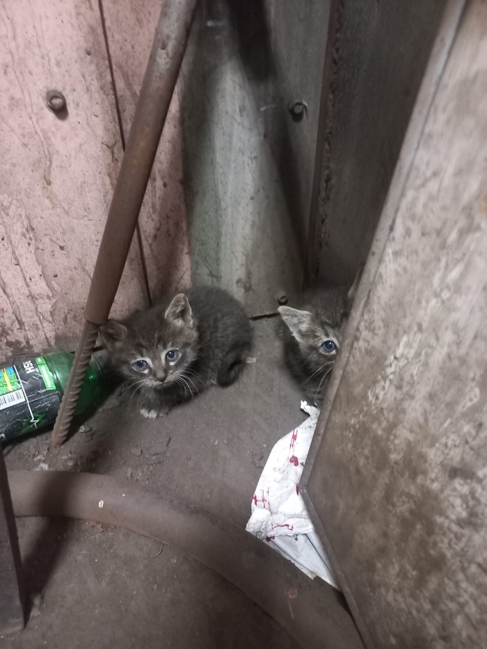 На Ижорском заводе в цех кошка привела котят, они еще совсем крохи! Котята там не доживают даже до подросткового возраста, их давит тяжелая техника, или они падают в печь, получают ожоги, несовместимые с жизнью и тд
