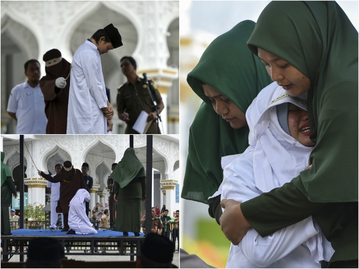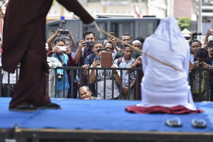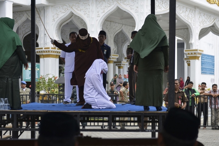 Шесть неженатых пар прилюдно отлупили палками в Индонезии