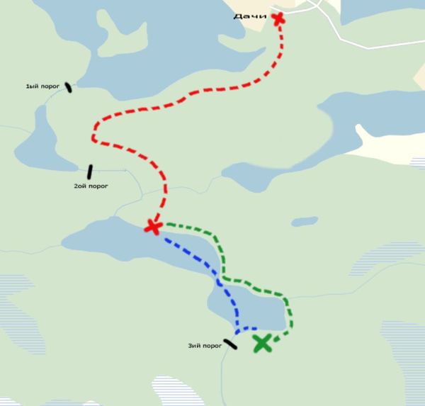 Еще со школьных поездок на эту дачу, у нас как-то сложилось, что мы всегда ходили только на 2ой порог - всего их в атласе было отмечено 5 (ближайший к озеру 1ый, а самый отдаленный 5ый) - он был не далеко (всего час пешком по лесу) и мы за свои многочисленные поездки его "облагородили" с точки зрения места для палатки, косторовища, импровизированных скамеек из попаленных деревьев. В общем там было очень красиво, "по фен шую", обжито, привычно и по-родному). Однако, в этот раз мы решили попутешествовать и попробовать добраться до 5го порога - настоящее приключение, неизведанные места, где не ступала нога человека и всякое такое)). Поход рассчитывался быть 4х-дневным с 3мя ночевками. В эту авантюру в итоге "вписалось" пять человек (я опять же, в целях конспирации, изменю имена так, чтобы героям похода было понятно, а остальным нет): Горан Иванишевич, Синиша Михайлович, Ронни О’Салливан, Ганс Кристиан Андерсен и, собственно, я.