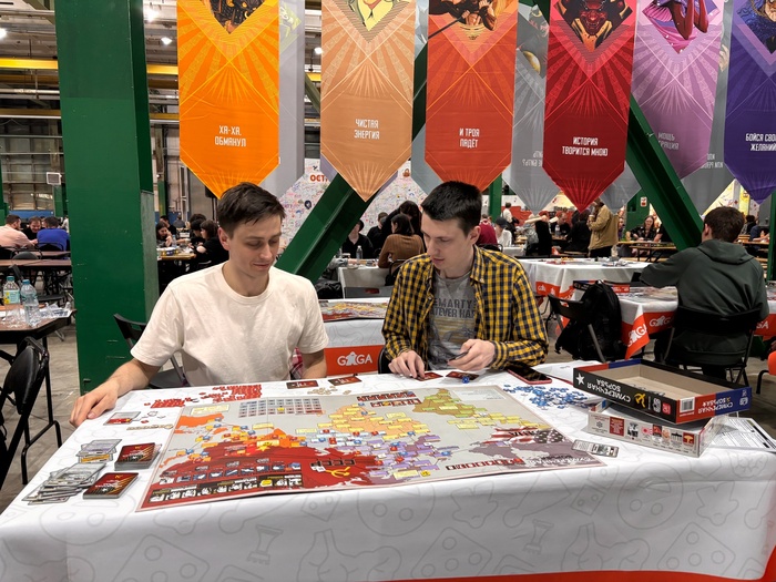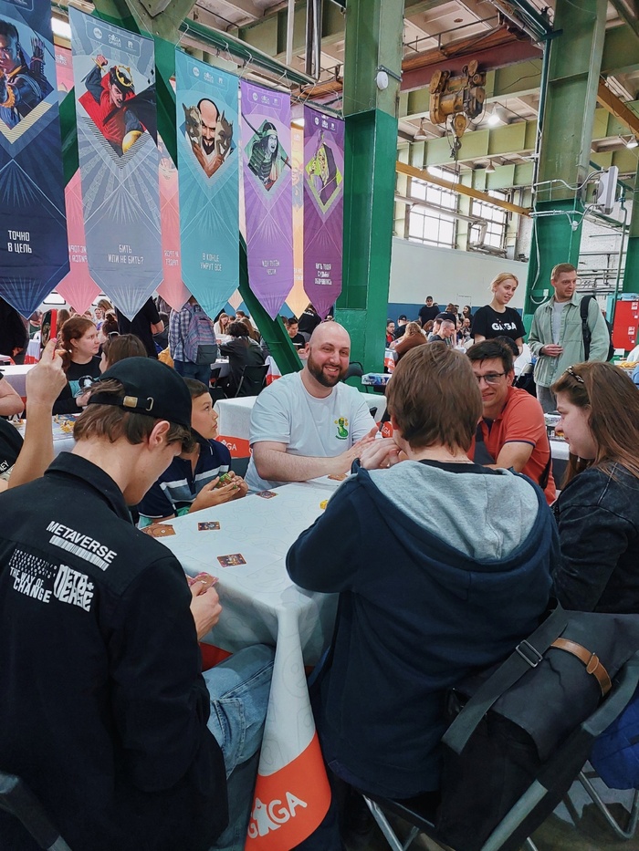 В суботу выбрался в Севкабель на свой первый настольный фестиваль, сам фоточки не делал, поэтому почти все фотки утащил из вконтактика гаги, но на одной есть и я. Было очень не дурно хотя и душновато. Познакомился и поиграл с Тимуром с настолки лайв, поучавствовал в турнире по осколкам бесконечности, заценил "Корпус открытий" грядущую локализацию от гаги, в общем отлично провёл время, жаль только на воскресенье сил уже не осталось. Ну и да, спасибо всем кто там был и особенно организаторам.
