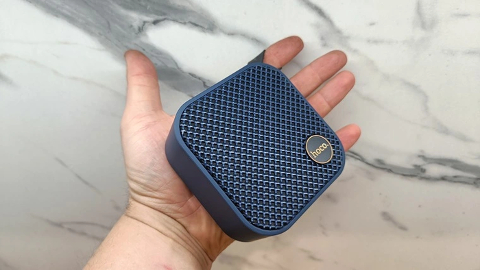 Портативная колонка НОСО НС22 выполнена из пластика с софт-тач покрытием. Размеры миниатюрные и в руке она прекрасно помещается. Таким образом, ее можно не только подвешивать за кожаный язычок, но и просто нести в руке. На лицевой стороне пластиковая сетка с акустической тканью на внутренней поверхности. Сетка просто вставлена в пазы лицевой части, но как показывает практика не выпадает. Сетка образует необычную структуру, создающую объемный эффект. В нижней правой части присутствует логотип производителя.