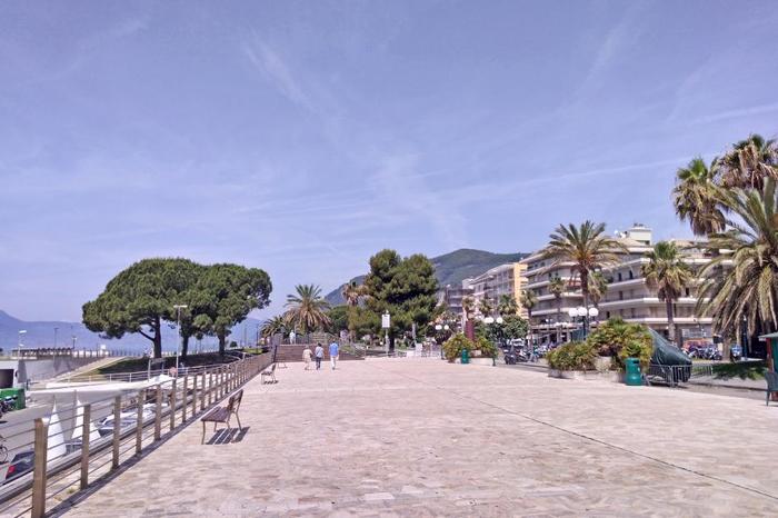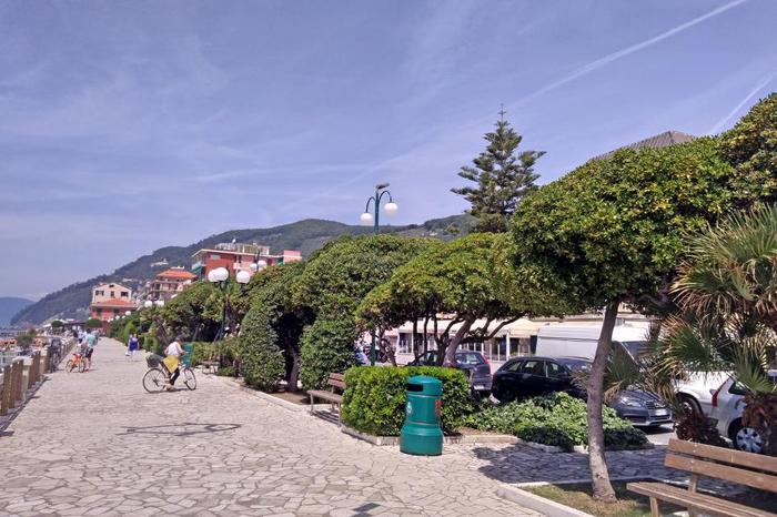 Прогулочная зона сузилась, появились велосипедисты и ухоженные деревья. Сразу представила себе, как тут красиво вечерами, когда зажигаются фонари, можно сидеть под этими волшебными деревьями и любоваться морем