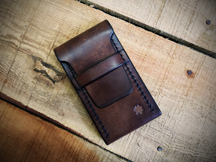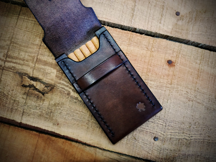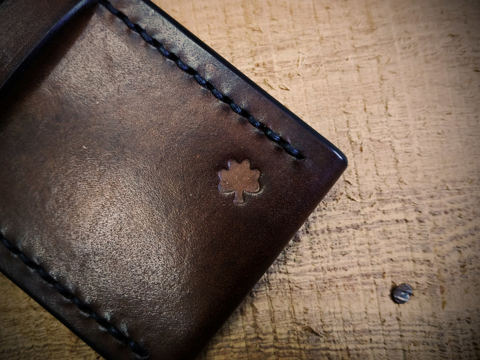 Немного шерфуем, полируем урезы, кнопочку обтягиваем этой же кожей, ну и всякое подобное. Иии получаем то, что получаем)