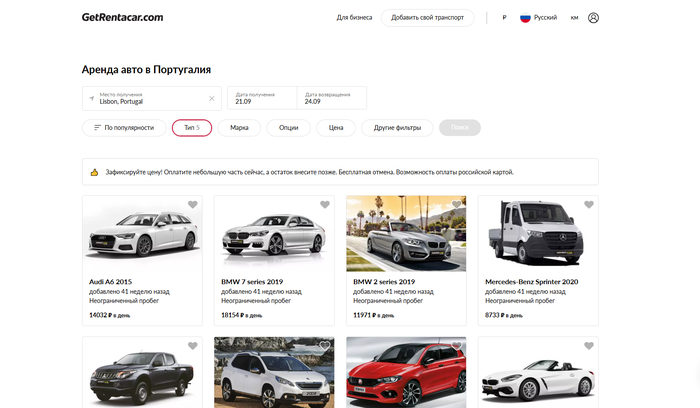 Getrentacar — №2: выбираю конкретную машину и плачу так, как удобно мне