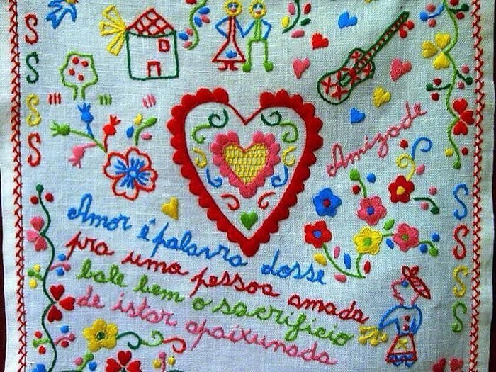 Платок любви / платок влюблённых (lenço de namorados / lenço dos namorados) — шейный платок из тонкой льняной / хлопчатобумажной ткани, вышитый различными мотивами.