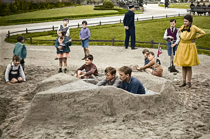 Немецкие дети играют в парке. Берлин, 1937 год.