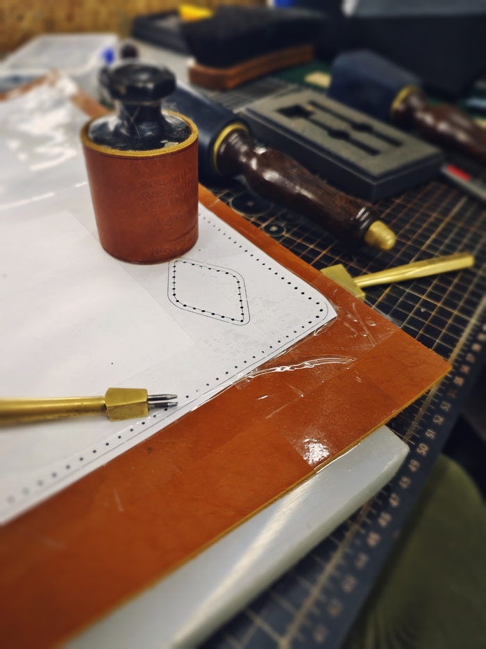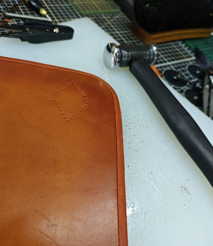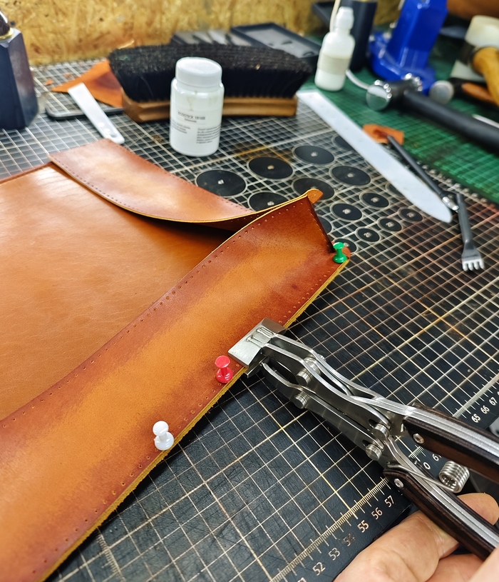 Также делаю разметку для своего удобства, чтобы не ошибиться в количестве отверстий под шов и чтобы сумка после сборки не "вертолётила"