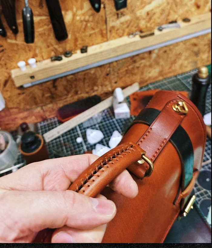 Осталось вклеить молнию, пробить отверстия под шов, прошить нижнюю часть и закрыть карман задней крышкой, которая ограничит его от внутренней части сумки.