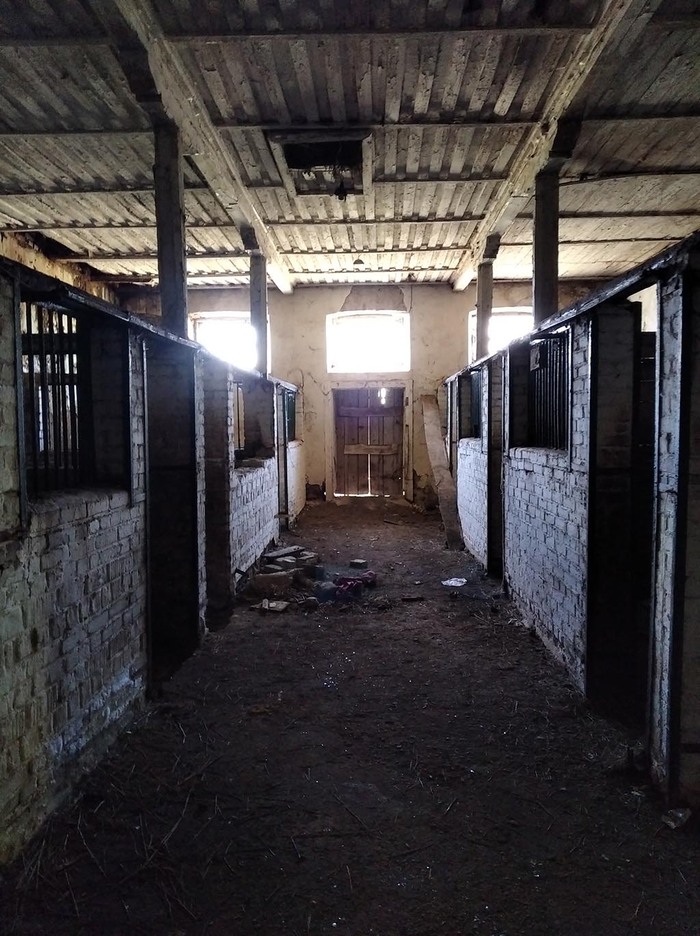 Внутри конюшен довольно жутко. Тот еще темный лабиринт. Нужно смотреть под ноги. По всем этим развалинам можно бродить на свой страх и риск. А в одном из флигелей на втором этаже горел свет и были замечены пластиковые окна. Там натурально то ли кто-то живет, то ли это администрация комплекса.