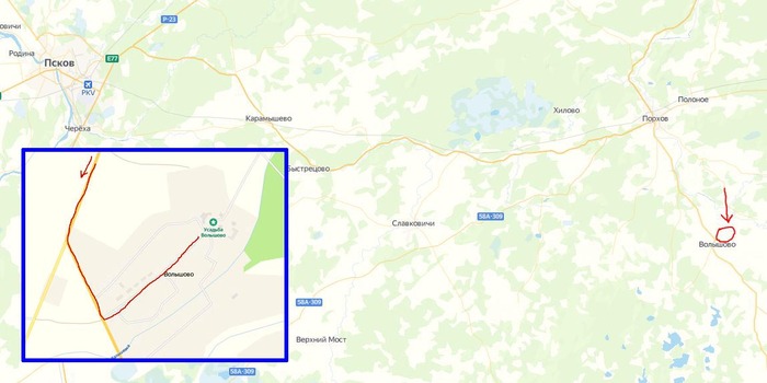 Место находится в 4 километрах от автомобильной дороги Псков-Порхов. На 2022 год приличный асфальт. Осторожнее на шоссе - между Псковом и Порховом оно уж сильно извилистое - не гоните. Карту, как всегда, прикладываю.