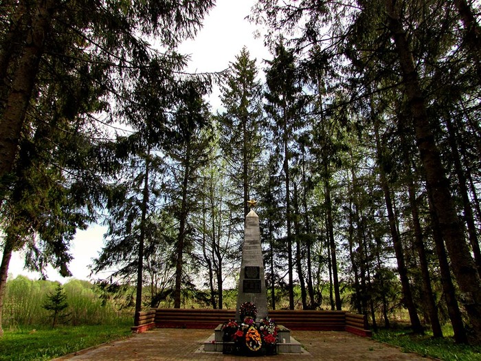 В центре - скромный но ухоженный мемориал жителям местных деревень, погибших от рук фашистов. Порховские окрестности немало пострадали от оккупации. Одна Красуха неподалеку чего стоит.