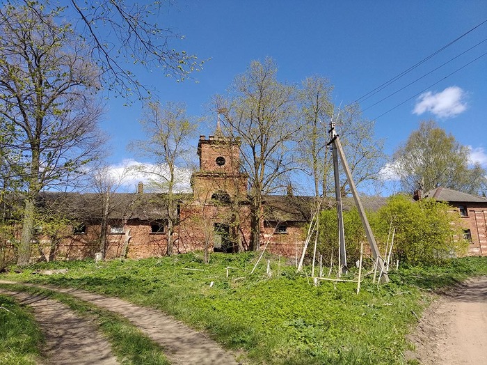 Не все знают, но в одной версте вверх по сельской дороге есть еще одна большая постройка - отделение конезавода, которое тоже строил граф Строганов. Больше похоже на замок, чем на ферму, если честно...