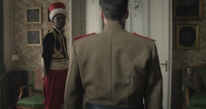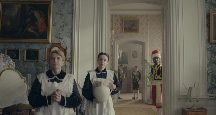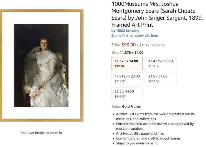 — ничто иное как репродукция картины с портретом миссис Джошуа Монтгомери Сирс кисти известного американского живописца Джона Сингера Сарджента. Картина хранится в одном из американских же музеев, но ее копию в позолоченной раме можно приобрести на Амазоне за сотню баксов... Реквизиторы сериала, видимо, особо не парились. Как и с короной Российской империи, судя по ее пластмассовому великолепию, купленной на алиэкспрессе. А «величественная горностаевая мантия» стараниями художников по костюмам превратилась в накидку из мексиканского тушкана.