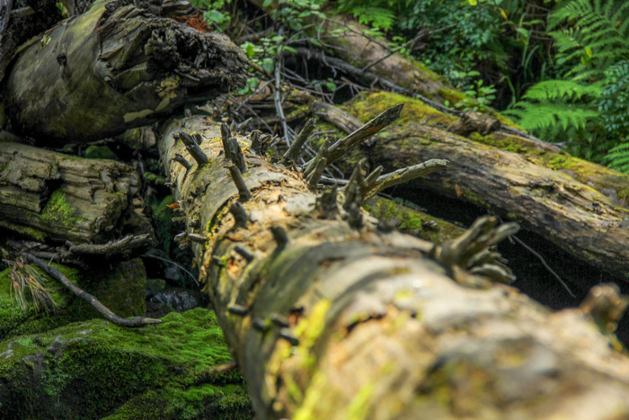 Наступать на ствол поваленного дерева нельзя ни в коем случае, даже если сверху ствол уже затянул мох. Нет, не так: в особенности если ствол уже затянул мох.