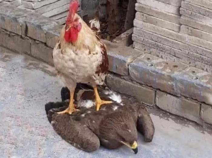 Может ли петух одолеть ястреба, орла, коршуна, или такие фото – фотошоп