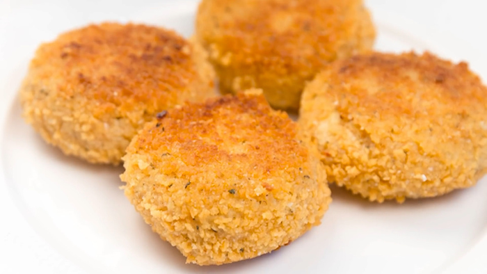 Из получившейся массы формируем котлеты и обваливаем в панировочных сухарях. Обжариваем на сковороде до золотистости.