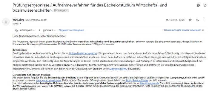 Что я хочу сказать? Никто не верил, что это случится. Конечно, я всем говорила, что планирую поступать в WU. Но как-то до конца 11 класса все думали, что я просто шучу :) я очень рада, что мной гордится папа, который в мои годы тоже сделал «невозможное» — уехал из родного села и поступил в престижный советский университет с высшими оценками. Все в шоке, в общем, и родственники, и учителя, и просто знакомые) надеюсь, когда перееду, смогу рассказать вам о жизни в Австрии и всем таком.