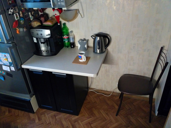 Поэтому мой взор упал на такие компактные настольные варианты как на фото. На стол ставить такое так себе, поэтому разузнав габариты техники и габариты шкафчиков решено было поставить ее в шкаф.