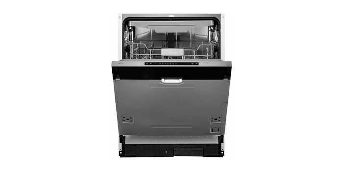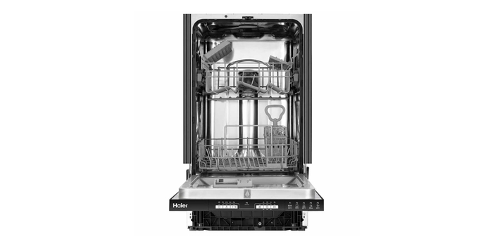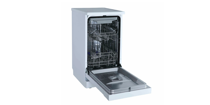 Открывает рейтинг узкая встраиваемая посудомоечная машина Delonghi DDW06S. Она наделена полной защитой от протечек Aqua-Stop, внутренней подсветкой в камере и простым кнопочным управлением. Рассчитана на стандартную для категории загрузку 9 комплектов посуды. Для ее размещения предусмотрено 2 эргономичные корзины с удобными держателями, а также переносной пластиковый лоток для столовой посуды.